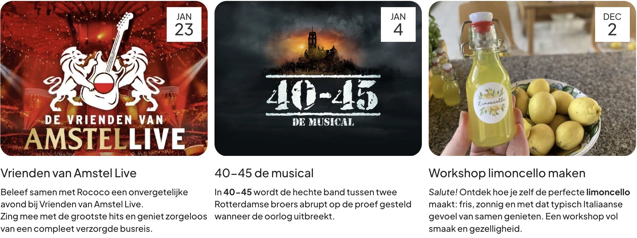 Medewerkers kunnen nu filteren op categorie en zien direct relevante activiteiten uitjes (musicals, theater, shows), reizen (stedentrips en weekendjes weg), sport (hardlopen, fietsen, teamevents) en cultuur (musea, exposities, monumenten). Geen eindeloos scrollen meer. Klik op een categorie en zie alleen wat belangrijk is.